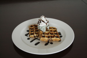 チョコミントアイスに加え、チョコソースにもミントが効いています。